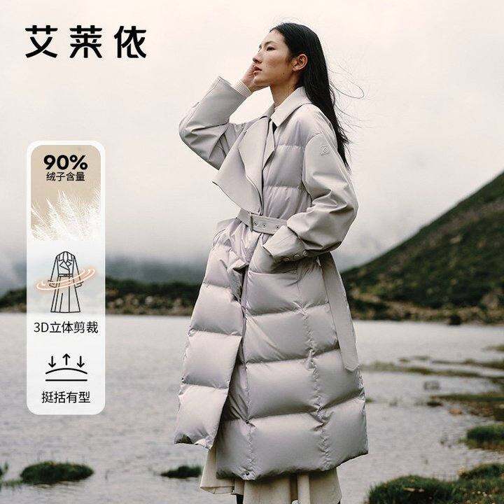 艾莱依御风系列长款风衣鹅绒服女2025冬季新款时尚显瘦羽绒服外套