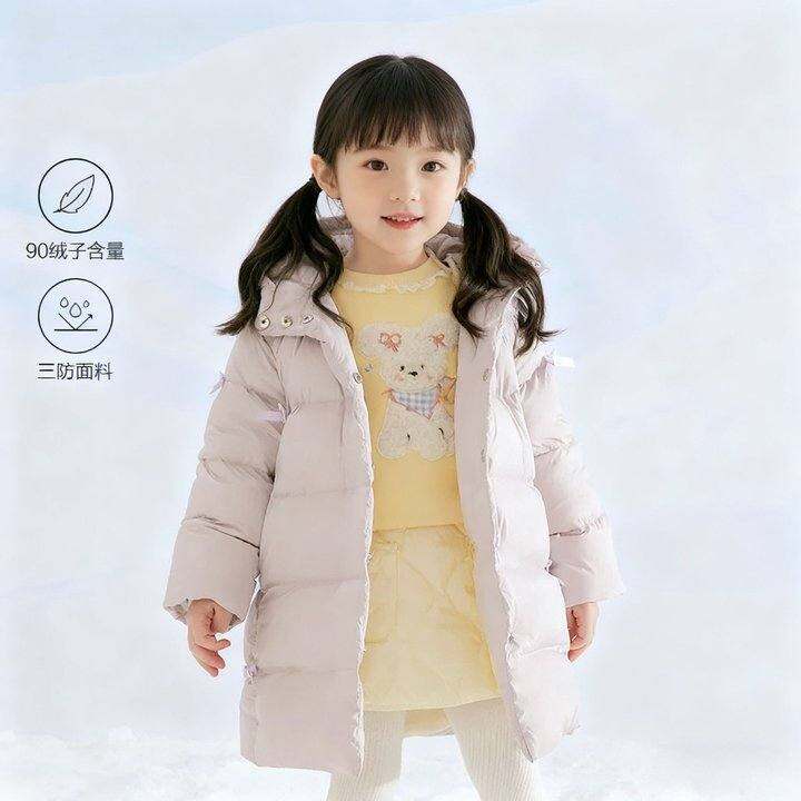 戴维贝拉儿童三防羽绒服2025女童新款A类抗菌连帽外套女宝宝冬装
