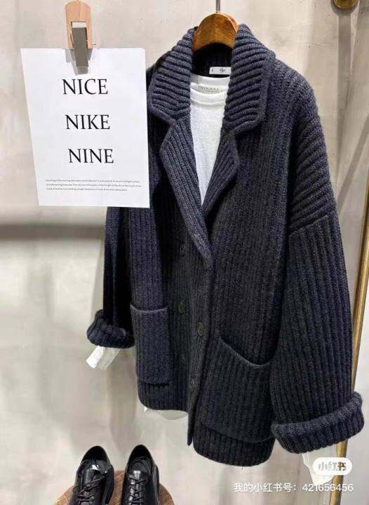 秋冬新款秋冬新款女装欧洲站时尚翻领双排扣口袋山羊绒开衫112631