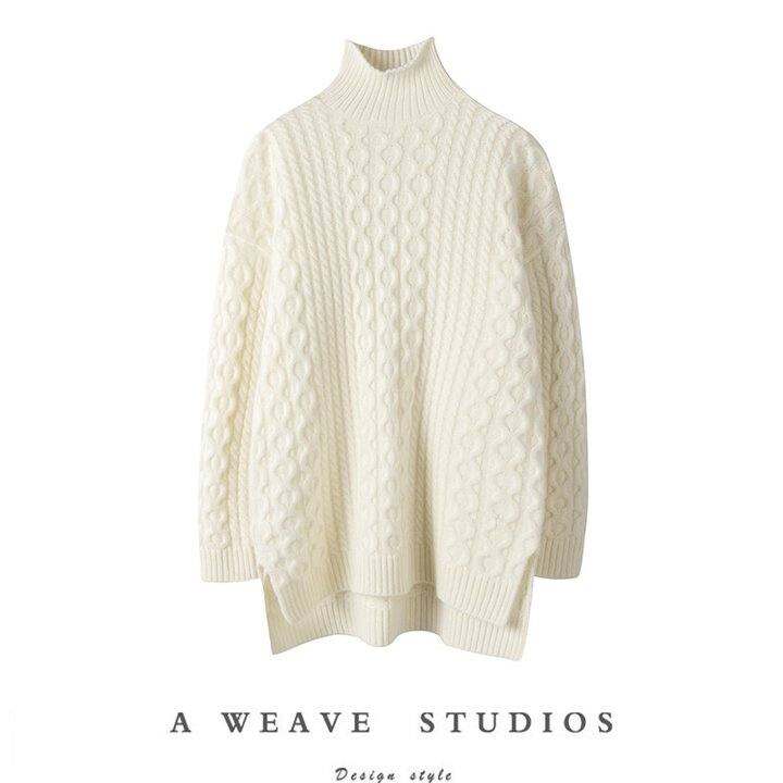 SQN美到哭泣~半高领羊绒衫女100纯山羊绒加厚宽松中长款毛衣女冬