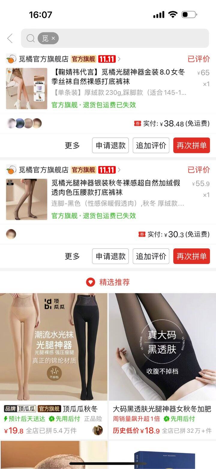 冬天到了打底裤必不可少,今年再一次提醒自己不要买寻觅橘子家的打底裤,去年买了三条都是一次性的,有一条甚至刚试穿就被扯裂了,有一条穿了一天后觉得还好,晚点洗澡时候脱下来一看屁股那里已经变得松松垮垮的了。[哈哈][哈哈][哈哈][哈哈]因为都是拿到手觉得不错就确认收货过了几天才拿出来穿的所以没法退换了。今年先观望观望。不知道这款顶呱呱的咋样,话说我一般都喜欢买踩脚的,连脚的感觉穿久一点就脚趾头又麻又酸疼,而且 ...