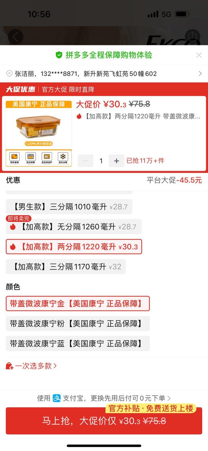 买了一个1220毫升二分隔的,虽然写着1220毫升,但是我一直觉得这种玻璃饭盒都比较厚,实际可用容量可能没有标识得这么大。
