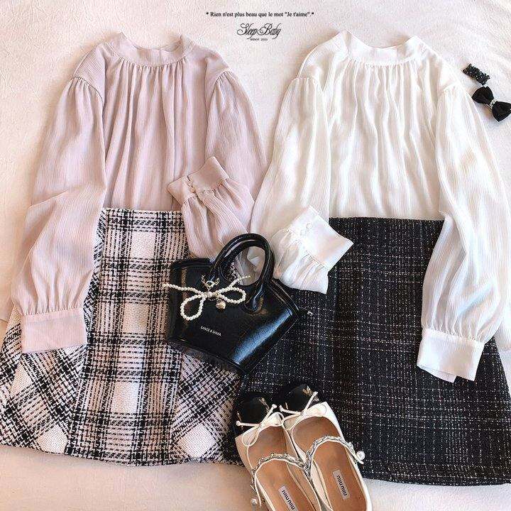 日单 清楚系温柔风日系立领清楚系纯色简约褶皱肌理感雪纺衬衫