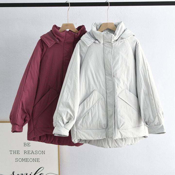 工装风连帽棉衣冬季厚休闲大码女装宽松小个子中长款纯色棉服外套