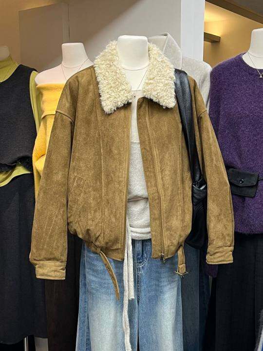 OK·FINE韩国东大门女装秋冬新款美拉德麂皮绒外套羊羔绒翻领夹克