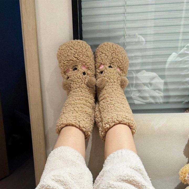 冬季好物|超厚小熊地板袜防滑加厚保暖中筒袜隔凉月子袜睡眠袜子
