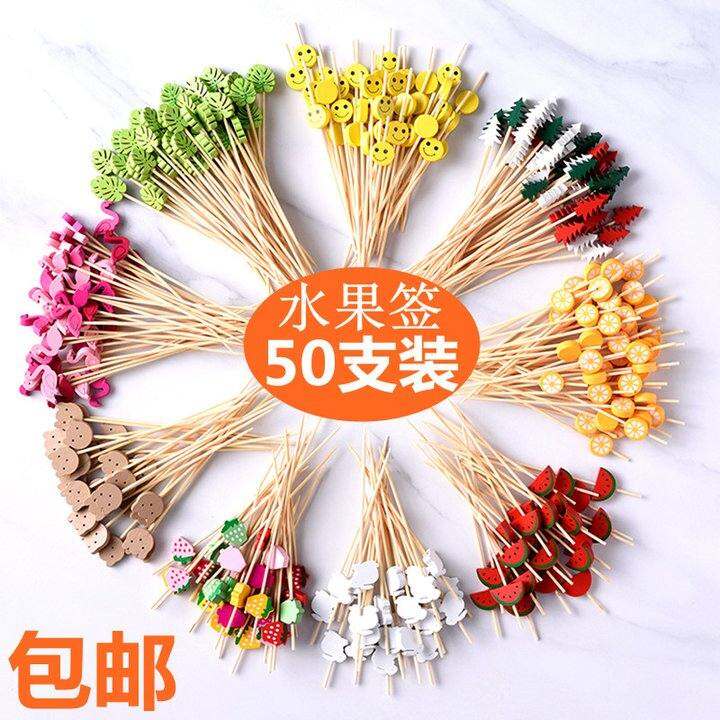包邮一次性水果签绿色树叶竹签水果叉寿司签叉酒吧创意鸡尾酒花签