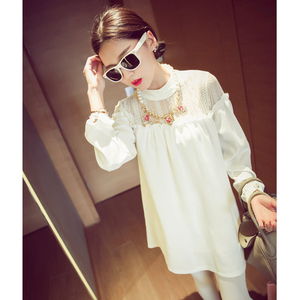 2014秋季新款女装 韩版百搭宽松性感镂空蕾丝接拼雪纺长袖连衣裙