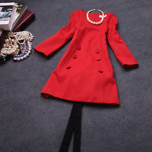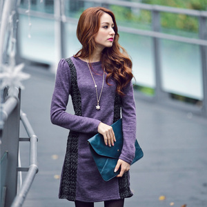 桔熊{DA1421}特价~混色毛呢拼接圆领长款上衣连衣裙大码S~5L