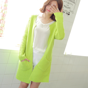 2014秋季新款女装 韩版气质糖果纯色口袋宽松长袖针织衫外套开衫