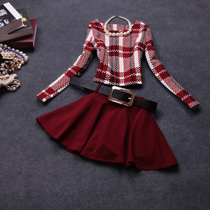 格调2014早秋新款女装时尚欧美气质潮格子修身长袖套装秋装连衣裙