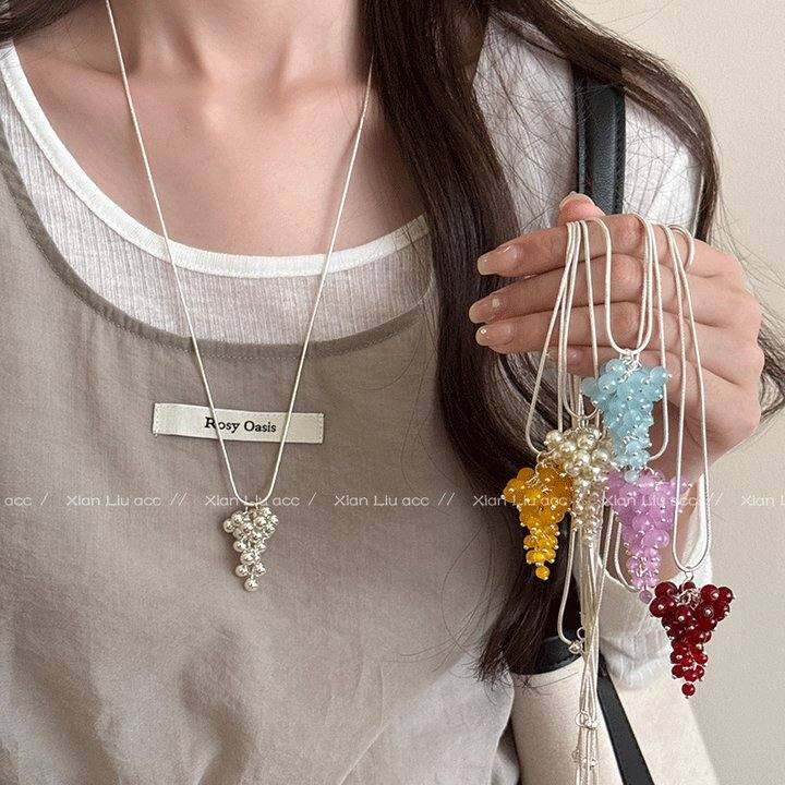韩系葡萄串珠天然石吊坠项链女时尚简约高级感锁骨链气质百搭配饰