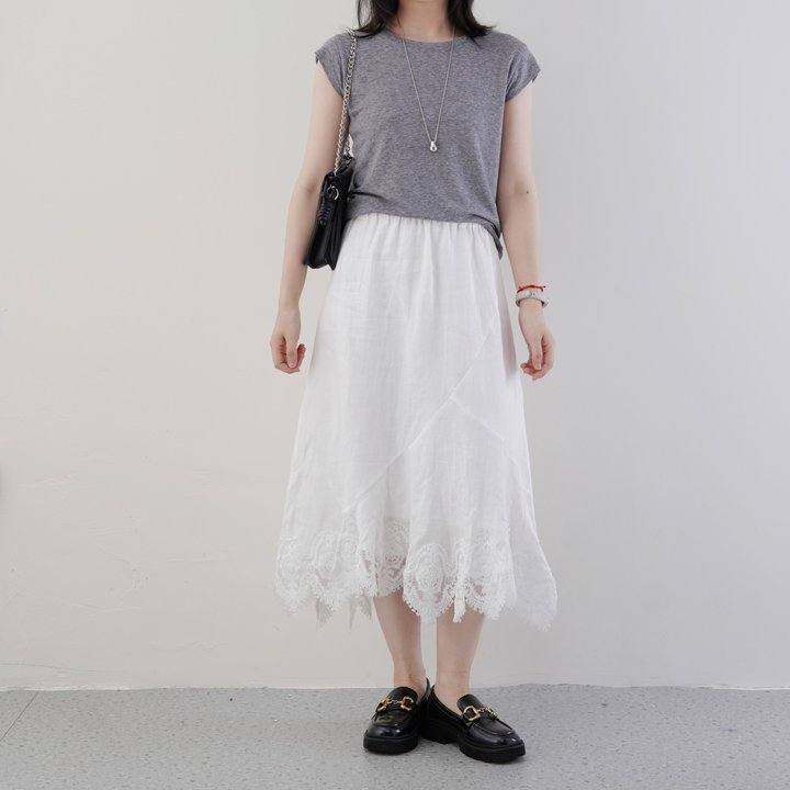 5.27 【定制!!15d发货】100.%亚麻花边拼片重工蕾丝半身裙(棉内衬
