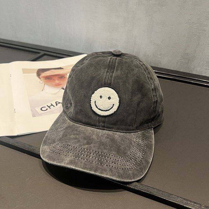 sei jauiq美式复古水洗做旧百搭显脸小纯棉棒球帽笑脸帽