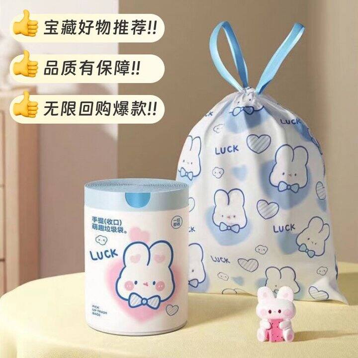 加厚抽绳式垃圾袋家用可爱卡通加厚大卷蓝心兔手提式