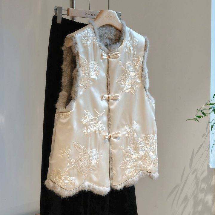 高端新中式双面穿真毛皮草马甲对襟盘扣国风高级感兔毛背心外穿女