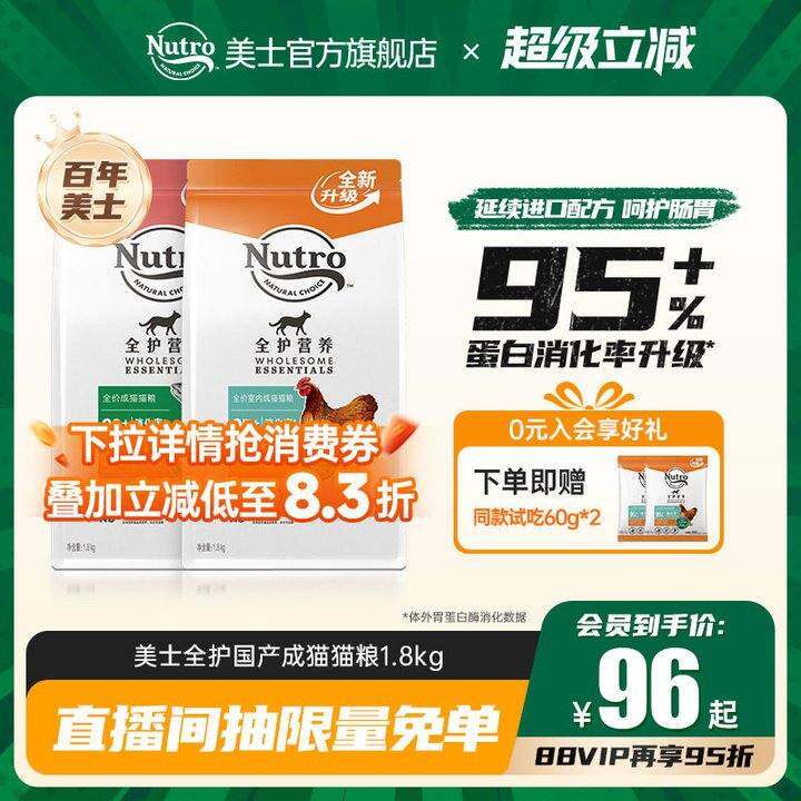 Nutro美士猫粮官方旗舰店正品增肥发成猫猫粮1.8kg护肠胃猫粮5kg