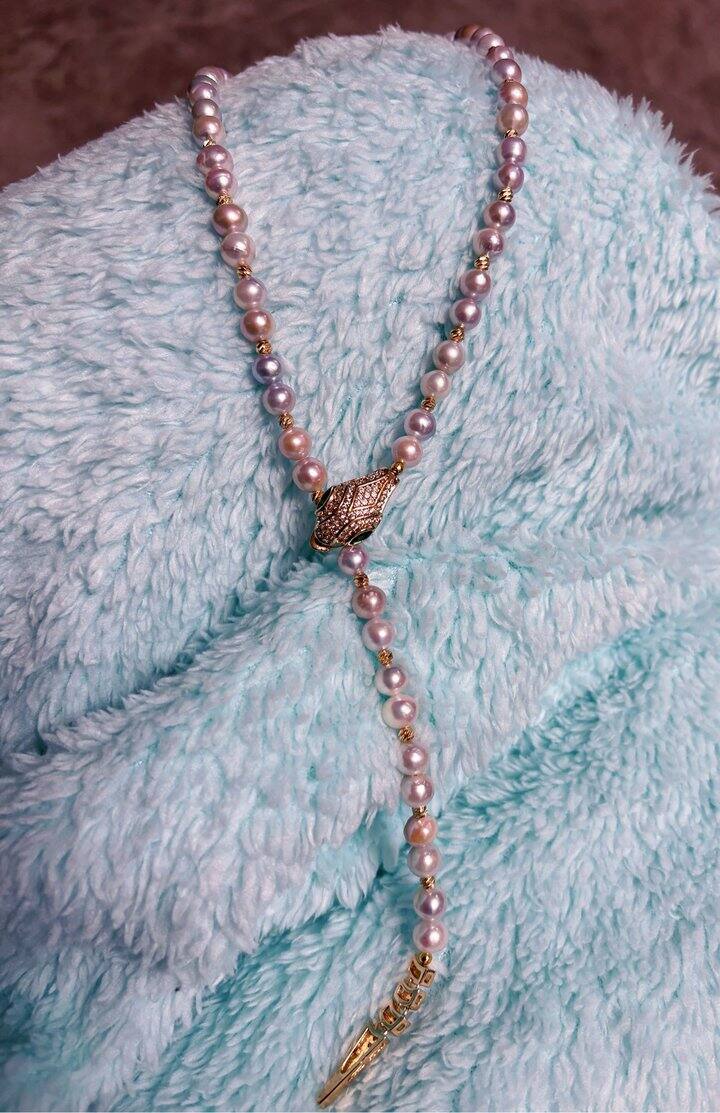 前阵子出过一条这个Y字链款式,是用滑皮巴洛克珍珠,只够做那一条的量,没办法复课,还蛮多姐妹来问。