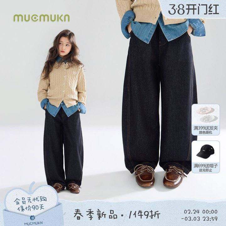 MUCMUKN【老钱丹宁】复古撞线百搭原牛弯刀牛仔裤星星绣女童26春