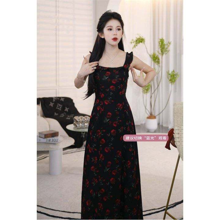 法式轻奢复古吊带连衣裙女2024夏季新款高级时尚显瘦设计感长裙子