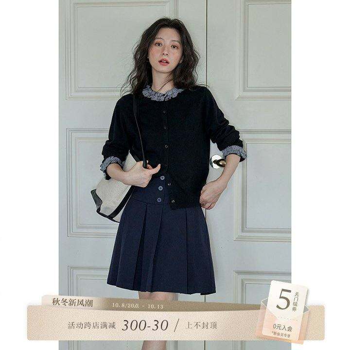 夕蒙2024新款初秋百搭外套上衣慵懒感洋气时尚黑色拼接针织开衫女