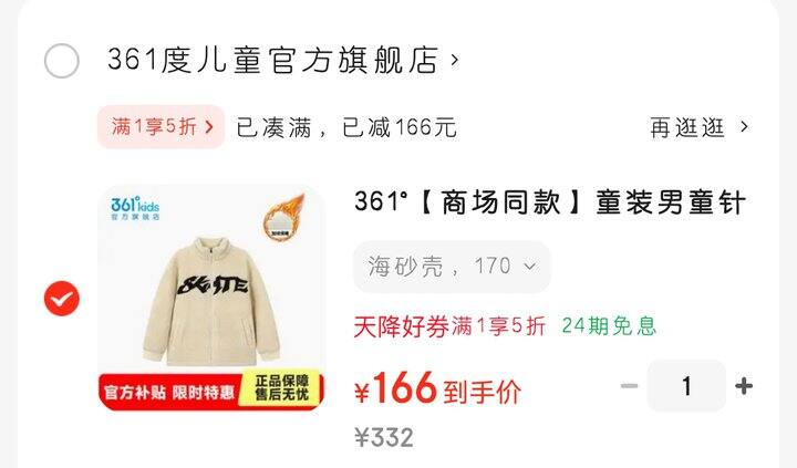 [闪耀]361°【商场同款】童装男童针织加厚外套2025年冬季新款中大童外套