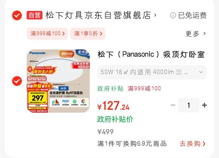 [闪耀]松下(Panasonic)吸顶灯卧室灯全光谱护眼银色简约款50瓦 HHXQ5160【包安装】https://u.jd.com/WgWGt1Z ... 全部信息