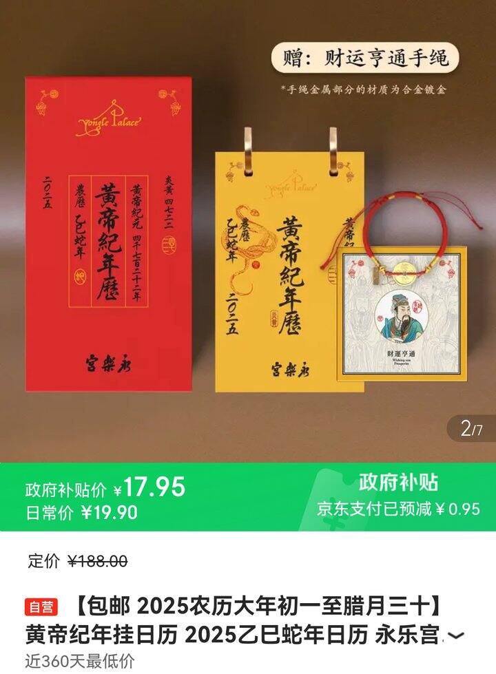 📚【2025农历大年初一至腊月三十】黄帝纪年 永乐宫壁画日历 赠财运亨通手绳