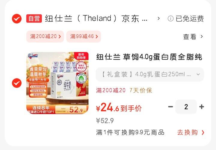 纽仕兰 4.0g蛋白质纯牛奶250ml*10礼盒装