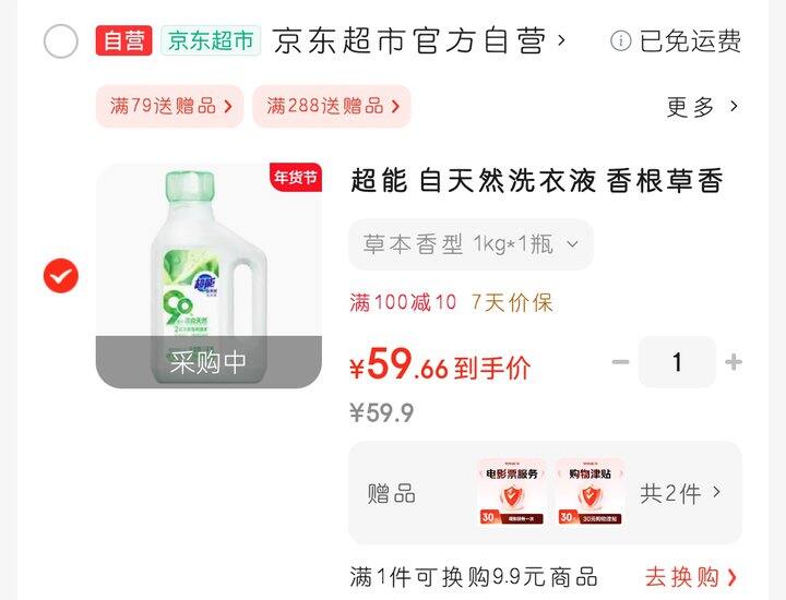 [闪耀]超能 自天然洗衣液 香根草香 1kg*1瓶