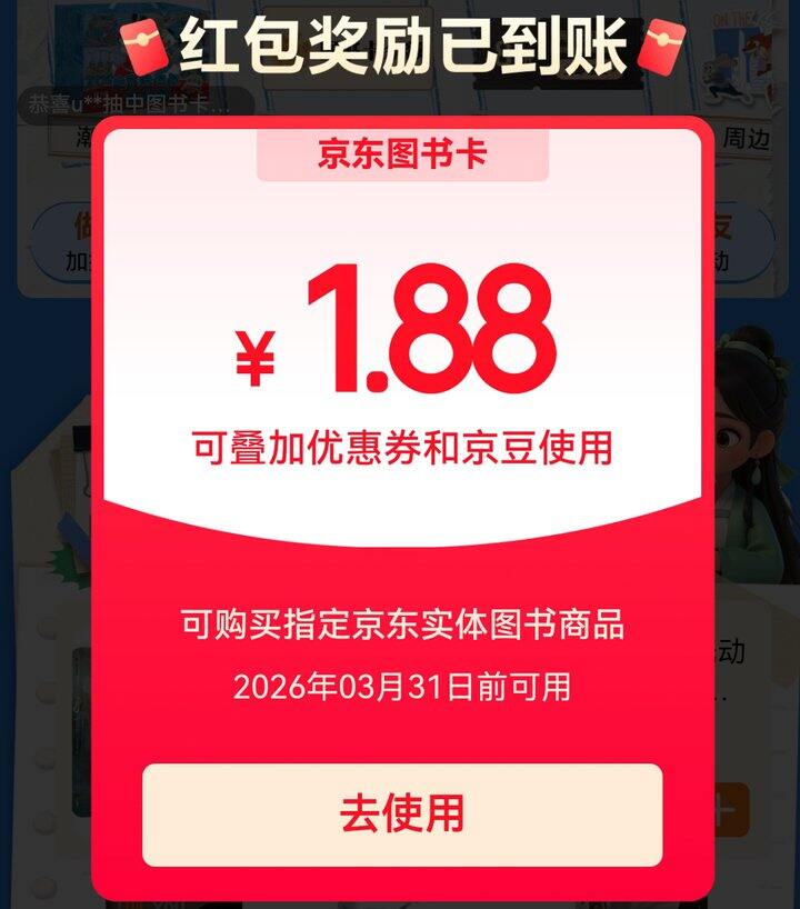 刚刚抽到了张图书卡,虽然只有1.88[哭笑]