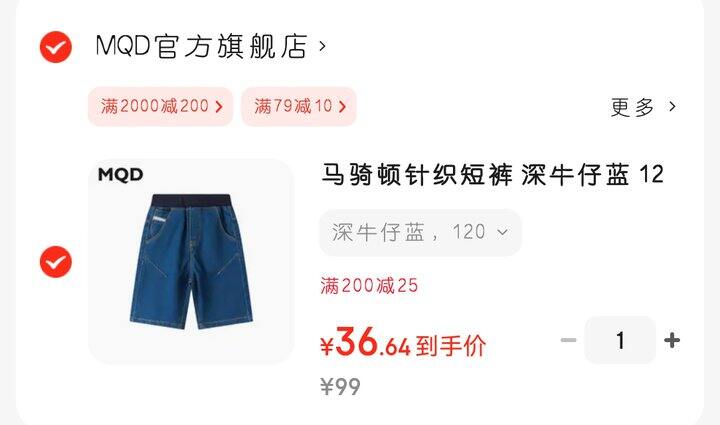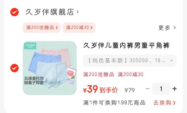 价格给力,可惜只有110~130中小码。