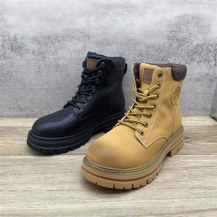真皮大皮马丁靴女百搭复古高帮大黄靴子英伦风粗跟短靴工装靴沙漠