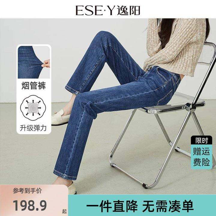 逸阳修身直筒牛仔裤女2025年春季新款显瘦高腰宽松百搭烟管长裤子