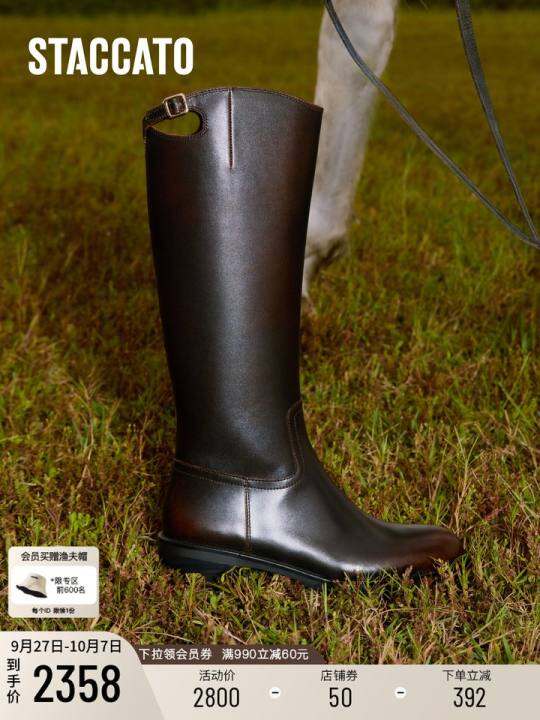 思加图2025冬季新款蝴蝶骑士长靴高筒靴时装靴粗跟女靴EIF04DG5