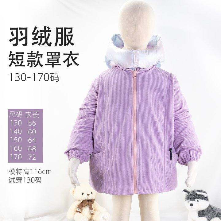 短款灯芯绒儿童羽绒服防脏罩衣大童前开拉链正穿护衣可外穿家居服