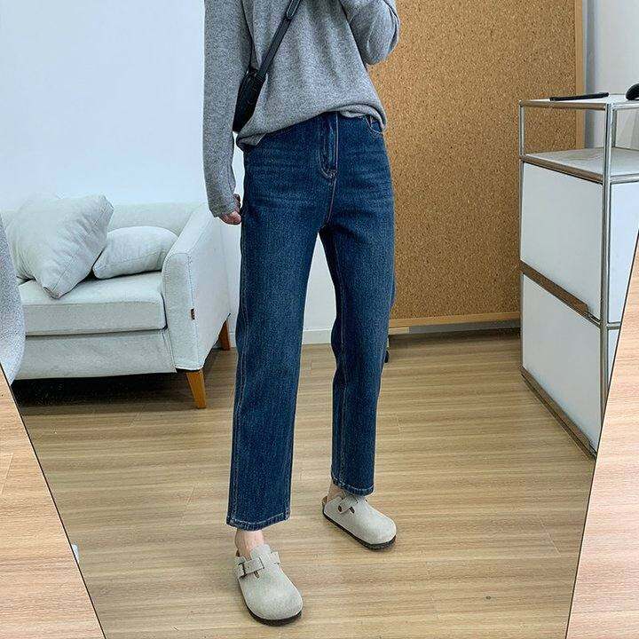 笔直薯条裤!显瘦四面弹直筒裤冬加绒小个子高腰烟管法棍牛仔裤女