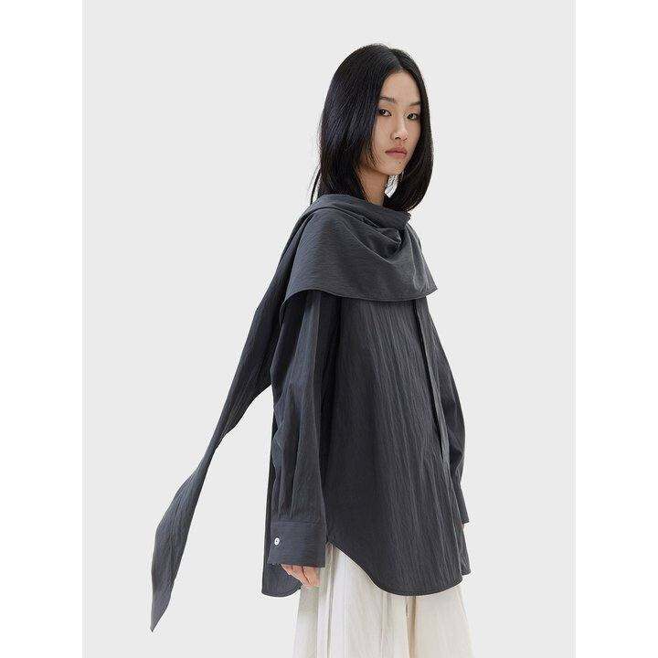 大飘带围巾领衬衫(暗门襟) 「seei」