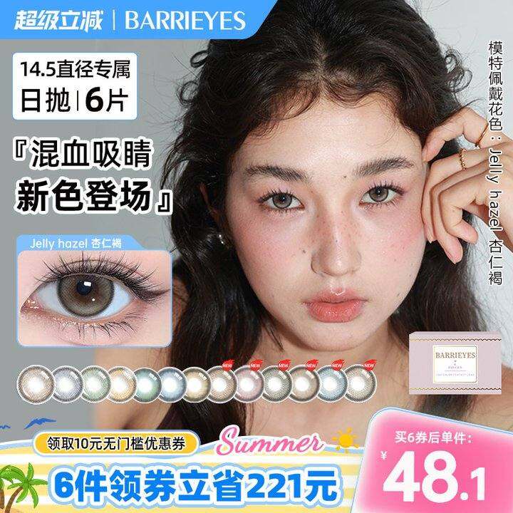 【紫盒14.5mm】BARRIEYES美瞳日抛大直径女隐形眼镜6片装淡褐色