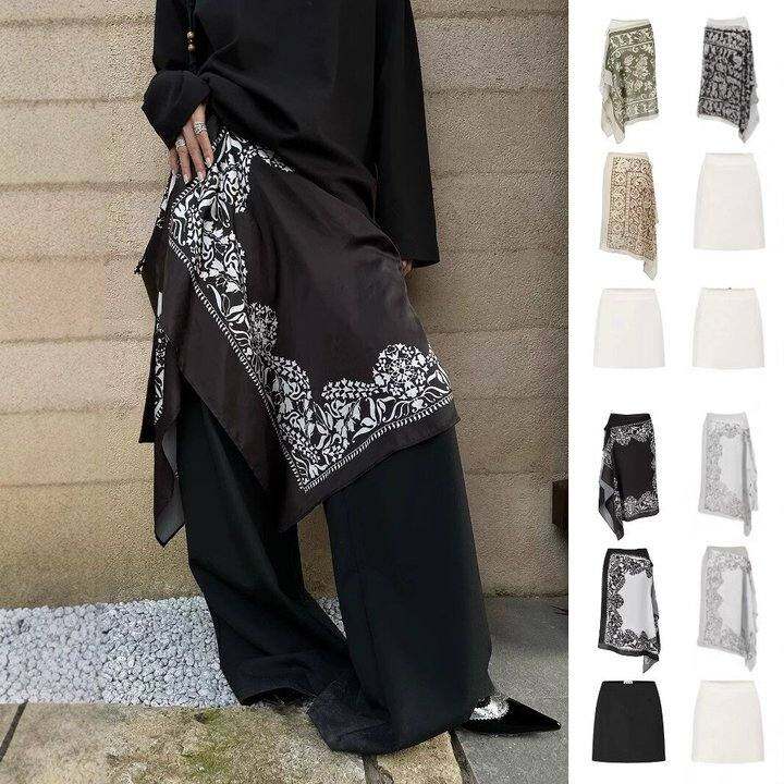 Hni 正确版ODTD25夏设计师品牌艺术印花撞色图案半身裙两件套裙子