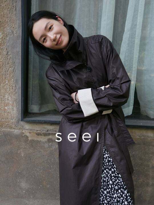 专衣seei(PM升级)丨油蜡皮感荃棉撞色卷边袖一粒扣风衣外套女秋