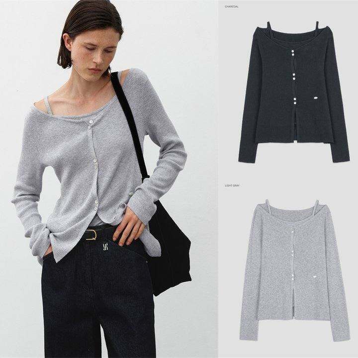 韩国设计师Atelier N@in柔软针织假两件纯欲风长袖针织衫打底衫