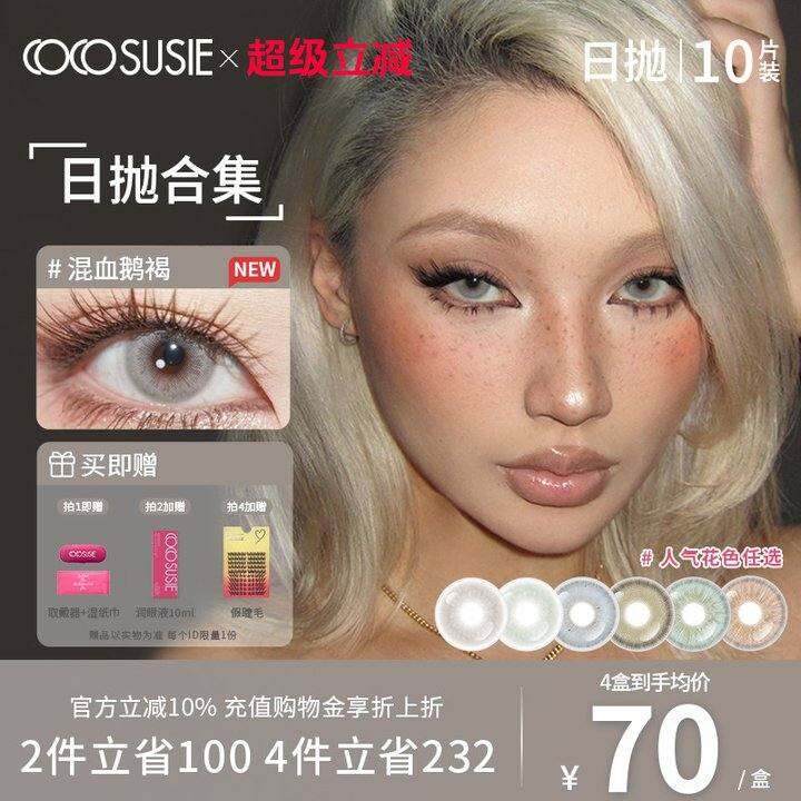 cocosusie美瞳日抛大小直径混血鹅褐彩色隐形眼镜灰嘟嘟10片正品