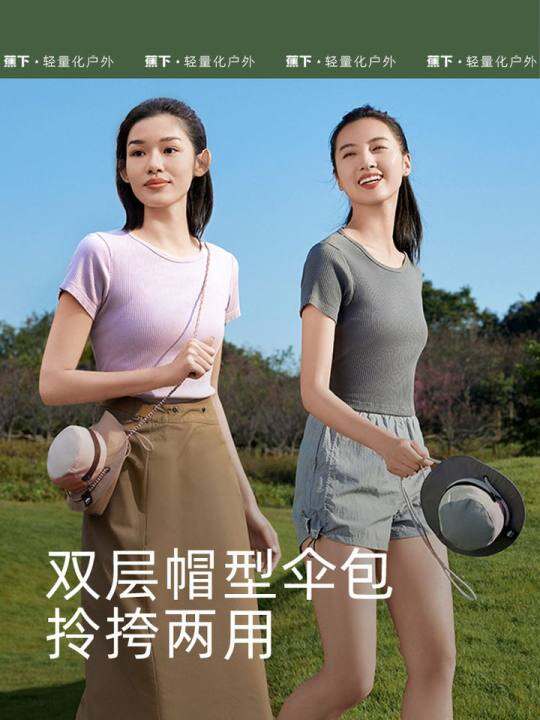 蕉下帽子伞黑胶防晒伞晴雨两用女帽型伞包防紫外线轻巧便携太阳伞