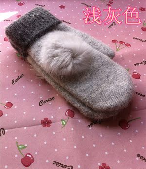 2014新款 真兔毛球球连指手套 双层加厚防寒翻边手套 9色可选