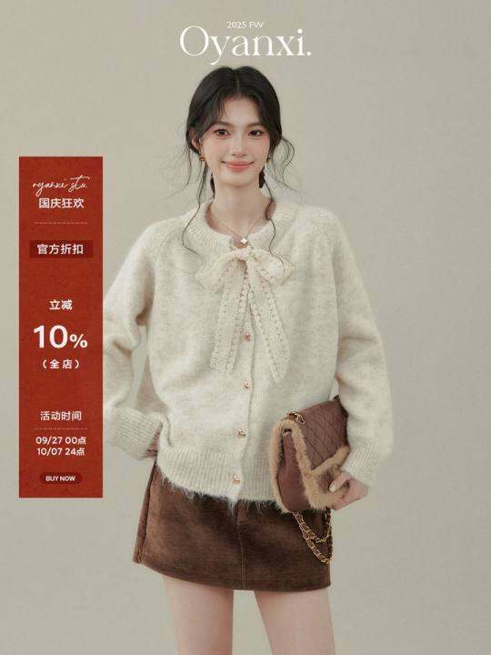 欧阳喜《梨云漫漫》蕾丝系带毛衣开衫女秋冬季慵懒风软糯针织外套