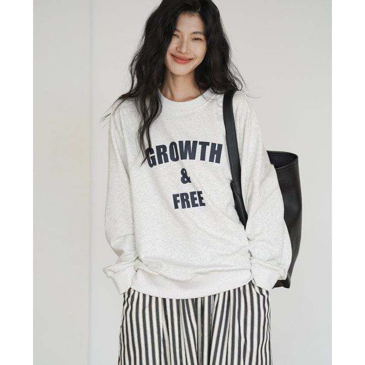 EIGHTHMONTH 美式灰色圆领卫衣女2024秋季新款宽松显瘦套头上衣