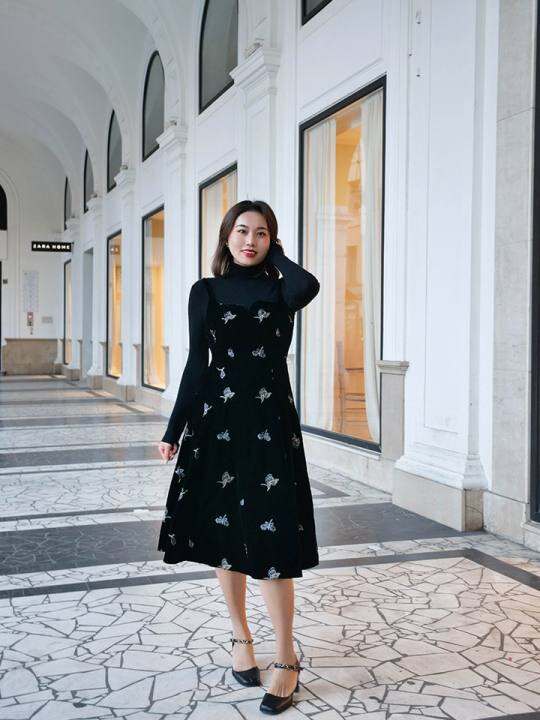 ERINA姨太太原创微胖【年会礼服系列】吊带裙内搭大码丝绒小黑裙
