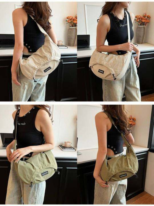 外贸单新款原创小众设计尼龙布包女轻便运动通勤抽绳单肩斜挎包包