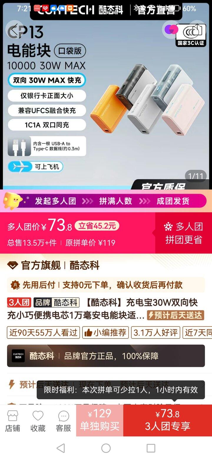 有没有朋友要拼这款酷态科的充电宝的!!!